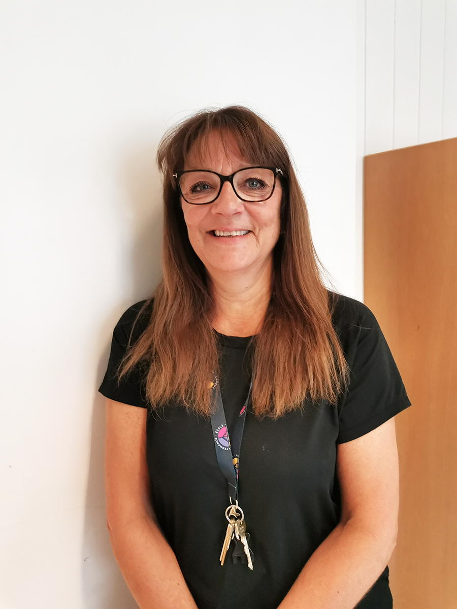 Tone er å finne stort sett over alt på skolen. Hun har jobbet her siden 1987, for det meste med renhold, men også gjerne med valgfag strikking. Hun setter pris på en super arbeidsplass der hun hvert år blir kjent med nye fine ungdommer.